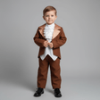 коричневий костюм на хлопчика 4-6-8 років. у комплектації фрак, штани, маніжка. вартість прокату вказана за 1 добу на вік 4-6 років
