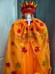 Яскравий костюм королеви осені на дівчинку 8-10 р. Костюм осені У комплекті сукня, пояс та обруч. При бажанні костюм можна доукомплектувати накидкою, перчатками. Вартість вказана на вік 8-10 років за 1 добу прокату за комплект у простій комплектації .