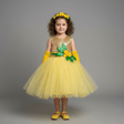 Костюм кульбаби - першої найяскравішої квітки весни. Жовта сукня зі золотою серединкою ( спинка шнурується корсетним шнуром), зелені листочки та ніжні квіточки на обручі створять неповторний образ кульбабки для маленької квіточки. При бажанні костюм кульбабки можна доукомплектувати рукавичками та туфельками. Костюм на дівчинку 3-6 років. вартість вказана за 1 добу прокату у базовій комплектації - сукня, пояс, обруч